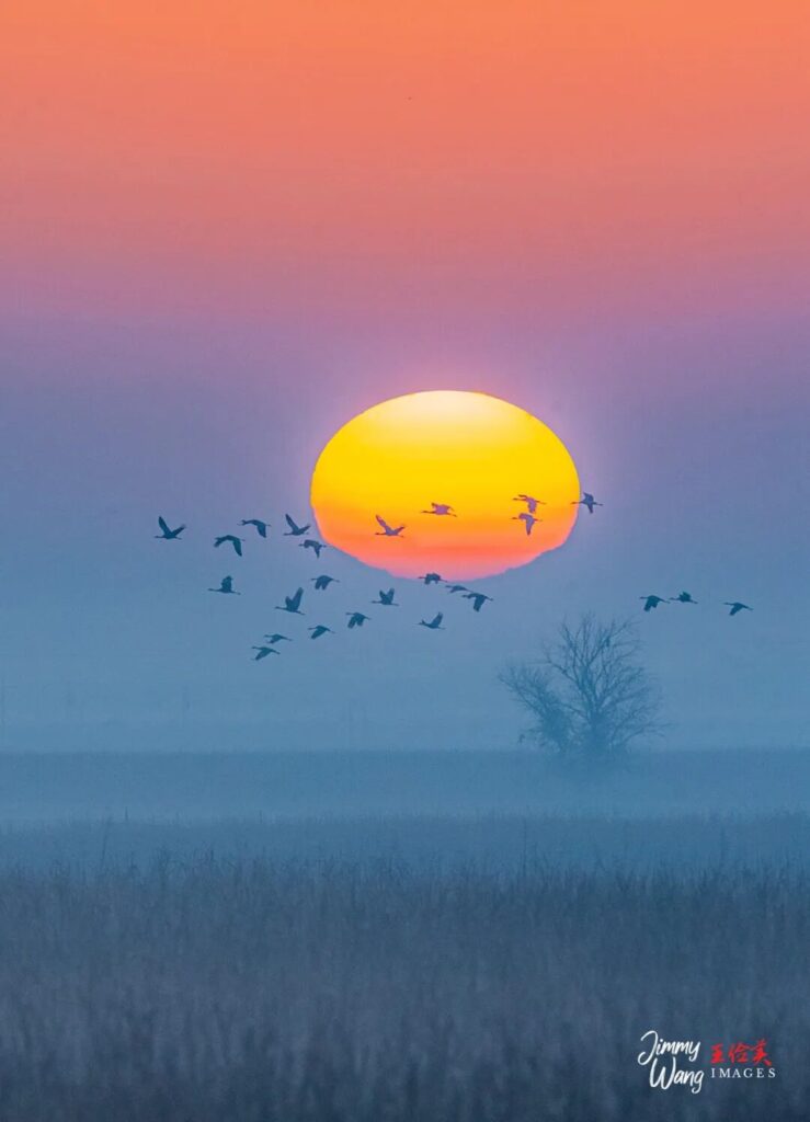 旭日东升鸟群飞。