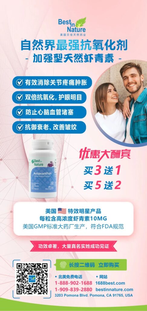【加强型天然虾青素】从雨生红球藻中萃取,含有天然叶黄素、角黄素和β-胡萝卜素。每粒含有高浓度纯天然虾青素10 mg,是自然界最强的抗氧化剂,提高免疫力。