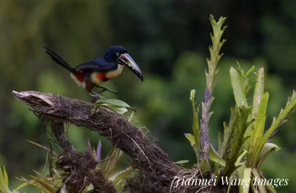 应该是Humboldt’s Aracari 洪氏簇舌巨嘴鸟。是巴西簇舌巨嘴鸟的一个亚种,整体相似,下喙除了喙基全黑色。