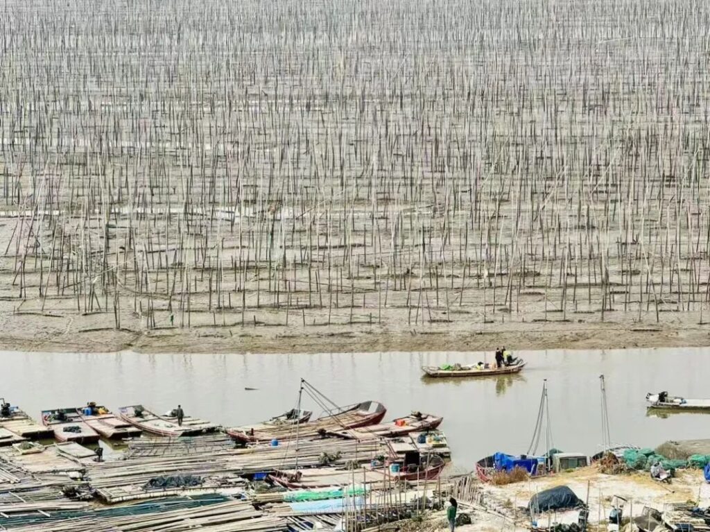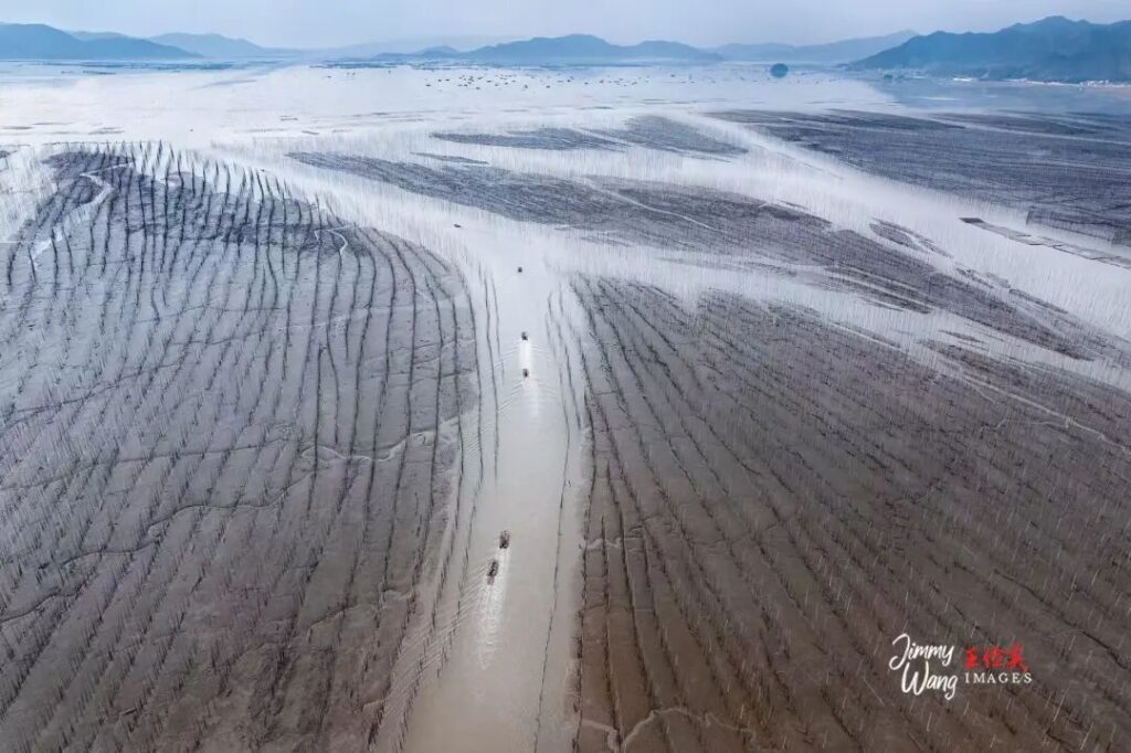 都说我的故乡温州是“数学家的摇篮”,要我说,福建霞浦才是“数学家的天堂”,纵横交错的条块形紫菜田、任意方圆的沙质滩涂纹理、浮标竹竿、渔排木屋、神秘的潮汐树……线条明晰,神来之手,写下人类读不懂的几何诗行。