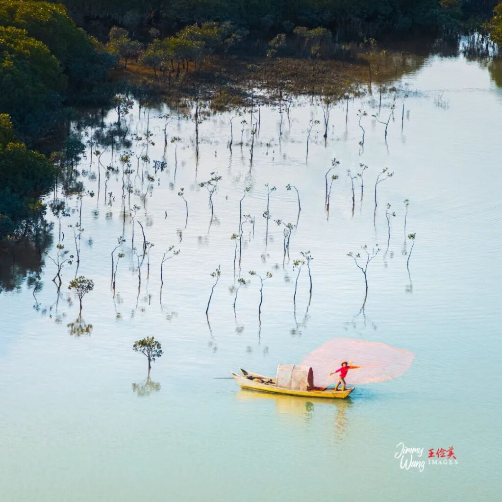 水中森林,线条婀娜,不胜渔女撒网向空,银梭飞练,化作千万重璎珞;收网回澜,玉珠溅月,散作万点钻石闪烁。