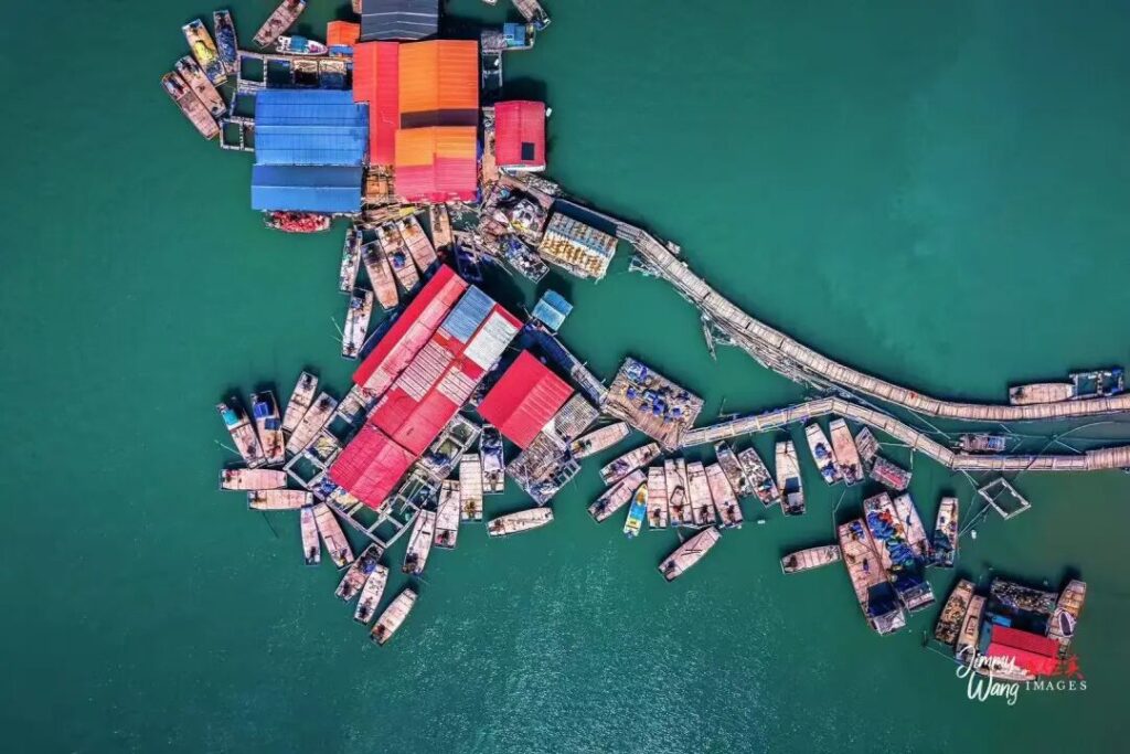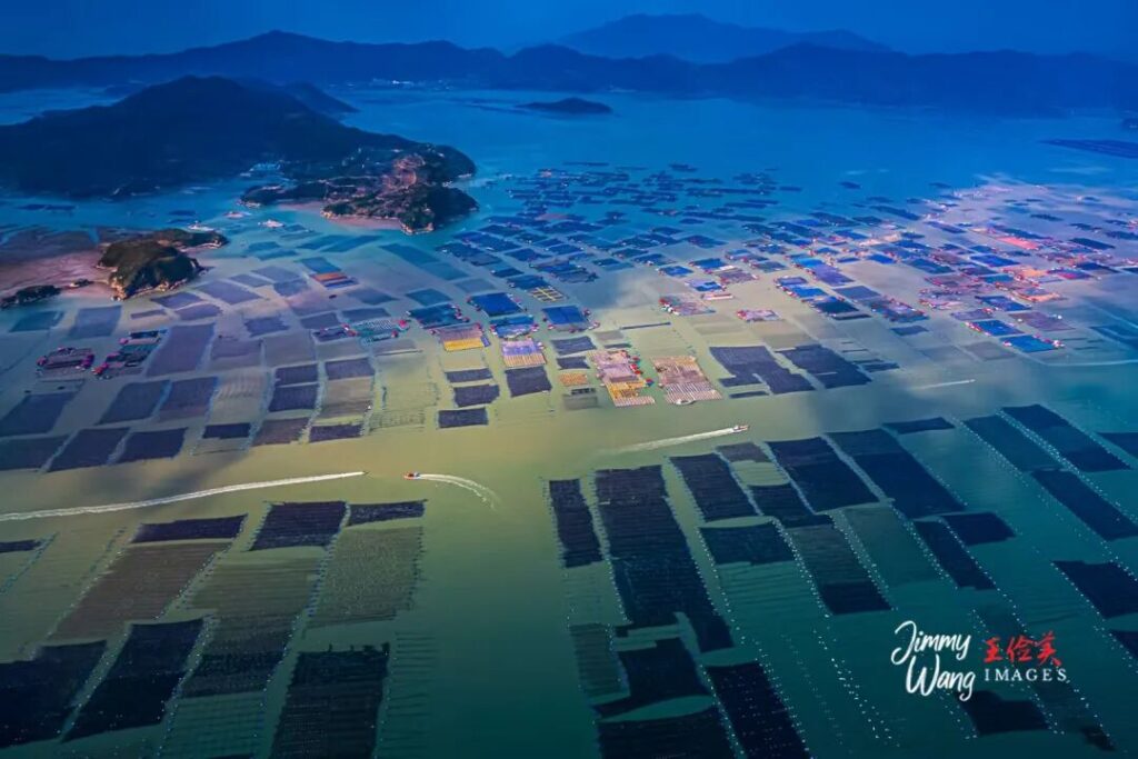 航拍于福建霞浦。渔业繁盛,渔船列阵如雁,犁银浪而破沧溟。