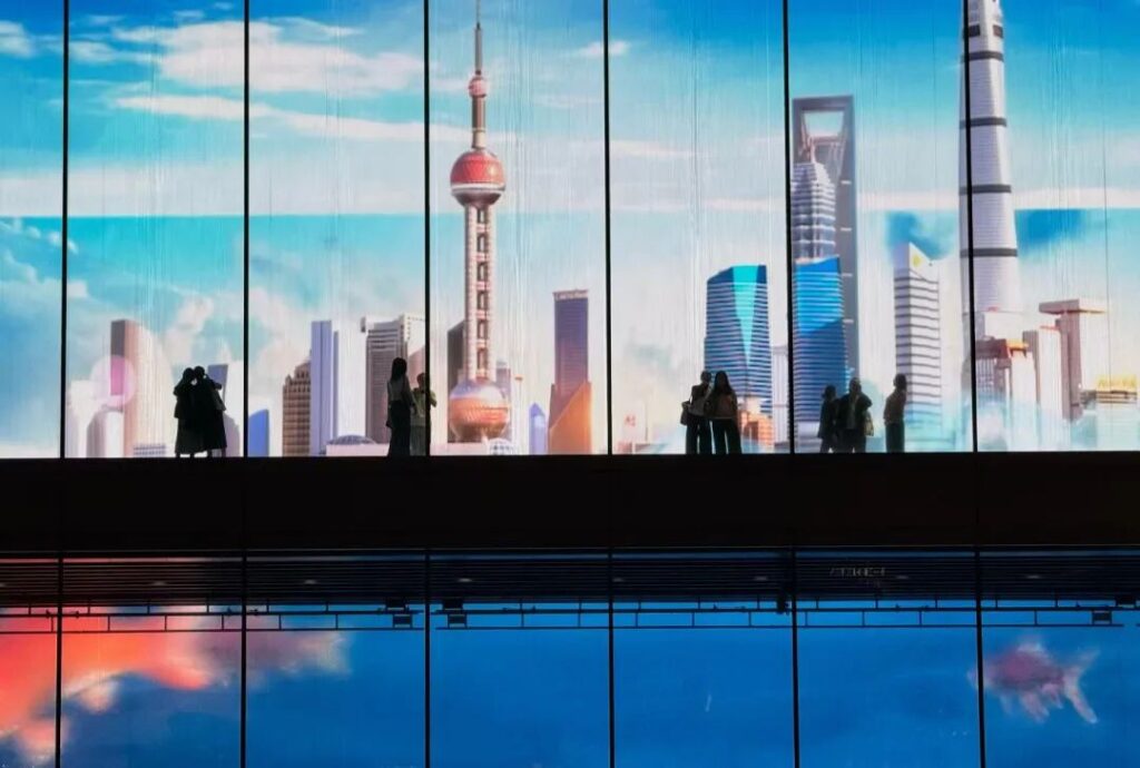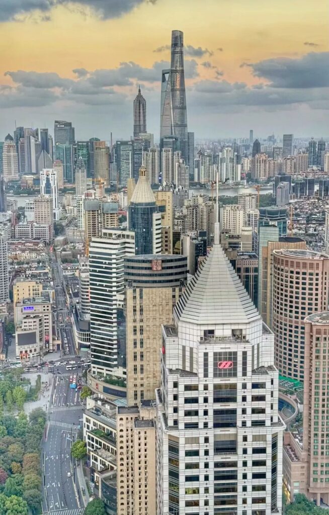 摩天大楼拔地而起,直指云霄,其中上海中心大厦以其独特的螺旋造型尤为醒目,鹤立鸡群,若龙脊扶摇直上,在云间书写摩天的诗行。