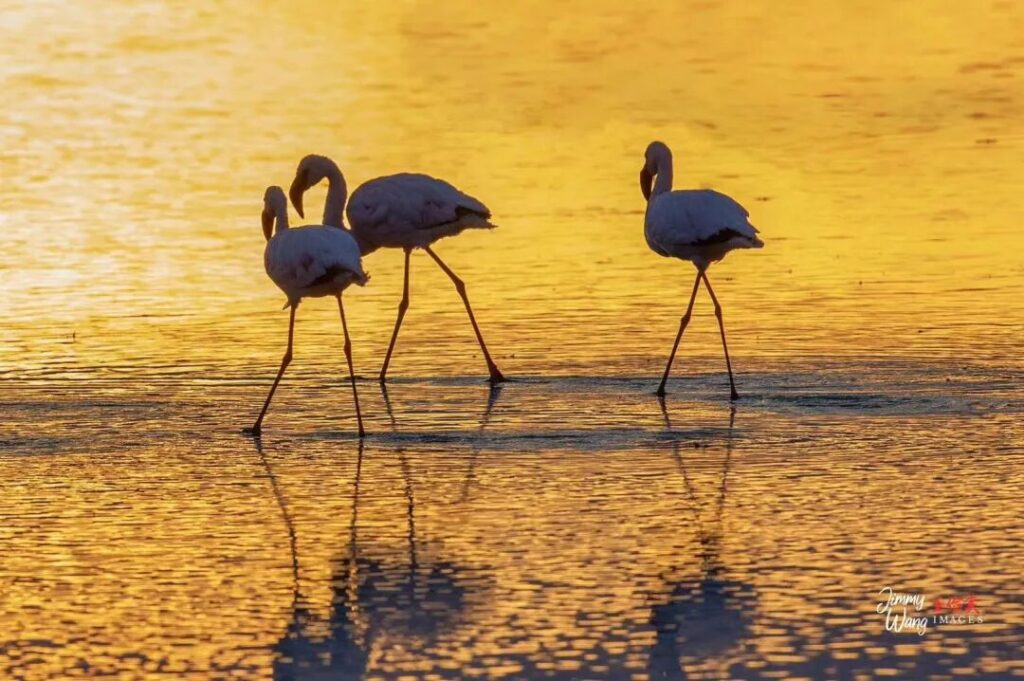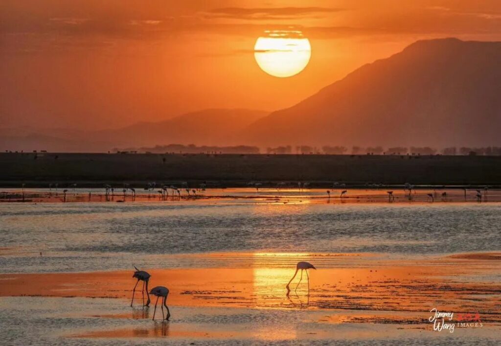 走进非洲,火烈鸟(Flamingo)主要生活在非洲、南美洲等地,栖息在温热带的湖泊、沼泽,喜欢群居,性情温和,胆小机警,一旦发现敌情,鸣叫着飞向天空。该鸟每次产卵1-2枚,由雌鸟和雄鸟共同孵化,孵化期一个月,火烈鸟寿命通常在20-50年。该鸟是鸟类中古老的家族,早在4000万年前,地球上就有火烈鸟飞翔的身影,全球湿地面积缩小,火烈鸟的生存岌岌可危。