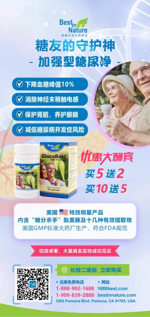 1、结合锻炼,注意饮食,【加强型糖尿净】降血糖有效。美国圣地亚哥曾先生(619-718-xxxx)罹患轻度糖尿病,平常检测,三个月血糖A1C(糖化血红蛋白)均保持在6.3,因一段时间缺少锻炼,饮食不注意,年检发现A1C已升至7.0,家庭医生要他马上开始服用降血糖药二甲双胍(Metformin500mg),早一粒,晚一粒。经朋友推荐服用美国特效产品【加强型糖尿净】,每天两次,一次两粒,晚餐不吃主食,但可食用少量土豆泥,饭后走路半小时,改为早上仅吃一粒二甲双胍,晚上一粒不吃,结果,空腹血糖回复为95-108正常值。曾先生非常高兴地说,【加强型糖尿净】降血糖真的有效,愿意亲身见证,并且他认为,该产品对糖友具有全面营养、预防并发症的功效,也是他喜欢长期服用的原因。