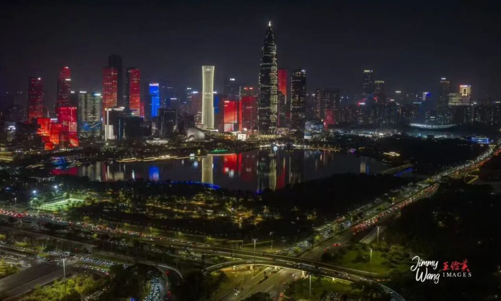 深圳航拍地摄(之六 )。夜幕下,霓虹点亮天际,城市脉搏清晰可见;