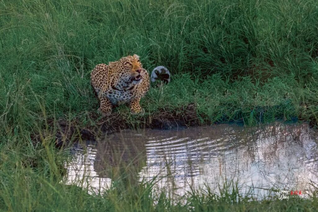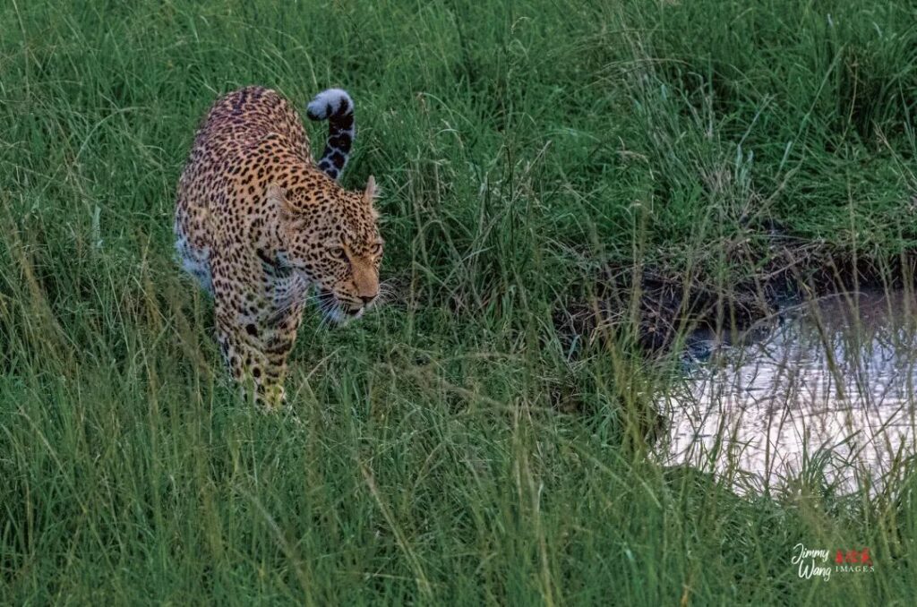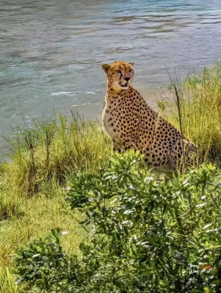 肯尼亚拍摄之旅·下篇(之三 )。在非洲草原的水岸边,一头猎豹伫立于晨光中,耳朵警觉转动,目光如炬,穿透草丛。