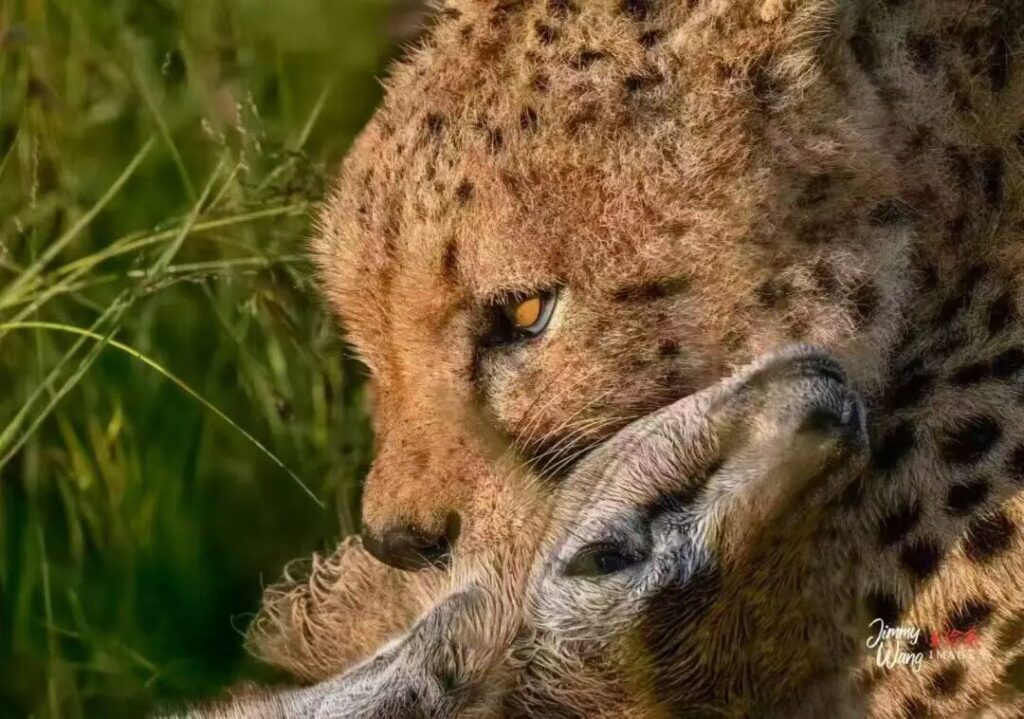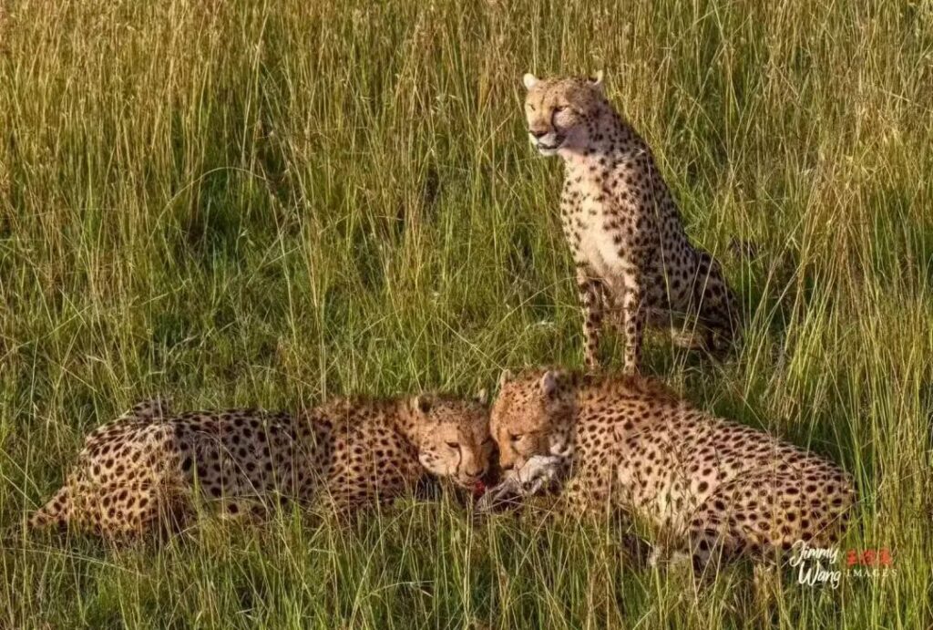 不远处,草丛轻微骚动,一只羚羊成了它和伙伴的目标。刹那间,猎豹如闪电般冲出,扑倒猎物,咬颈锁喉,让对方迅速窒息,这是它们的独门绝技。