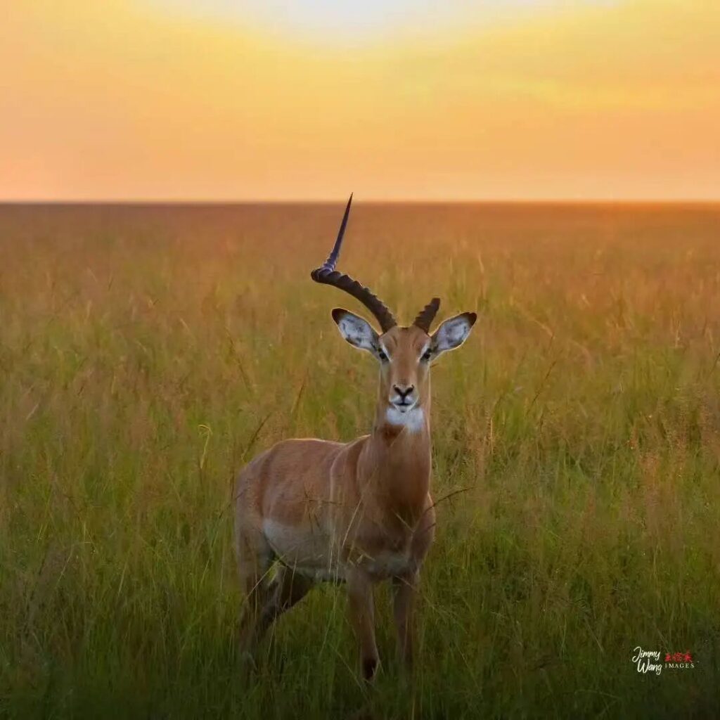 肯尼亚拍摄之旅·下篇(之四 )。第1张|一只雄性黑斑羚静立于晨曦初升的草原,挺拔俊朗,双角如弓,警觉地凝望镜头。