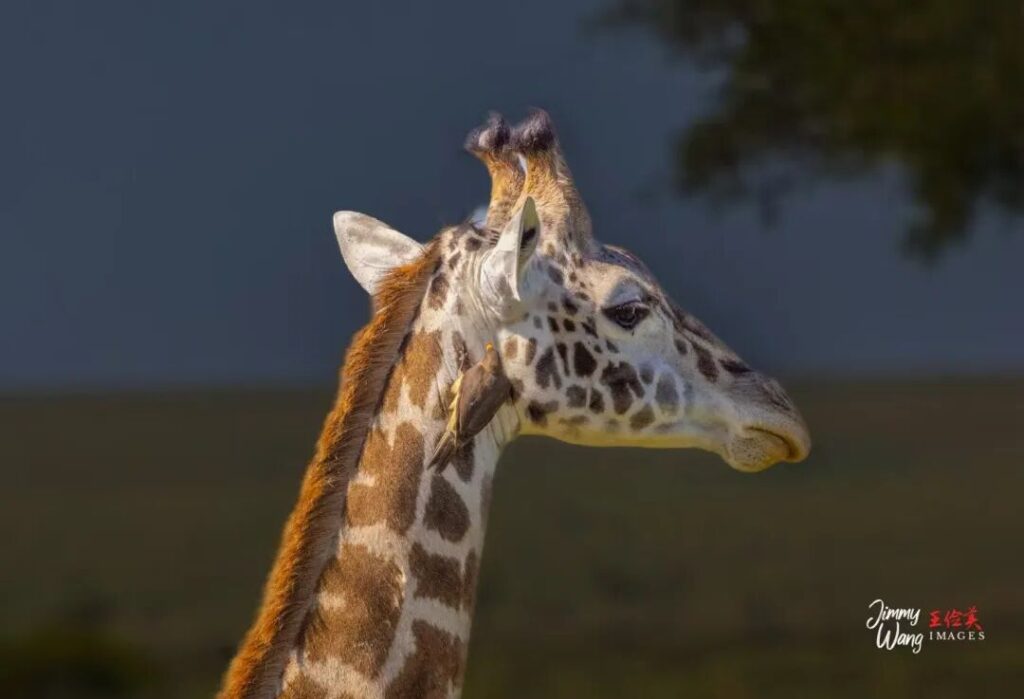 肯尼亚拍摄之旅·下篇(之一)。图1,一只牛椋鸟依附在长颈鹿的脖子上,形成典型的“共生”场景,相看两不厌,静谧又温暖。